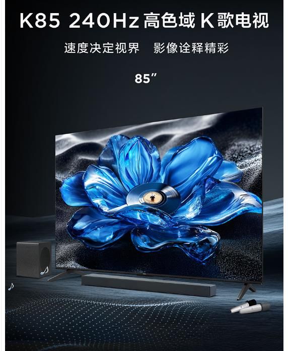 240Hz 疾速高刷,140% 电影级原色高色域,领曜芯片 M2+TSR画质引擎,蝶翼超显屏,全生态 HDR,五重护眼技术,4GB+64GB 超大内存,2.1 声道 Hi-Fi 级专业音响,自研乐 K 系统
