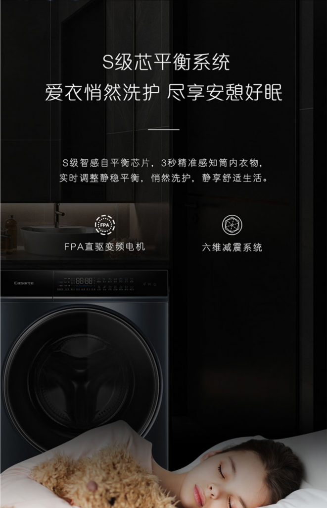 智能投放邂逅便携洗护,A赋能智慧洗 便捷洗护无忧智能面料判别,S级芯平衡系统爱衣悄然洗护 尽享安憩好眠,墅式空间纵情舒展 宽筒肚量尽情洗护