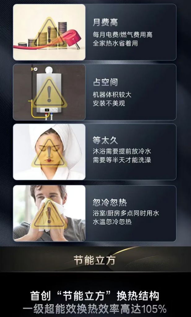 高效节能 ,舒适恒温,首创“节能立方”换热结构一级超能效,换热效率高达105%,嵌入式安装,母婴级恒温系统,五重净化科技,智慧互联 随心掌控