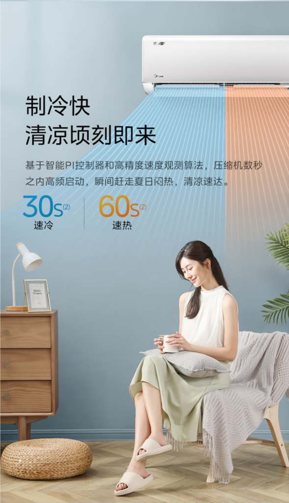 新一级能效能效升级 更省电,一键防直吹冷风不吹人,720m3/h大风量 窝在角落也清凉,极速制冷热30秒速冷 60秒速热