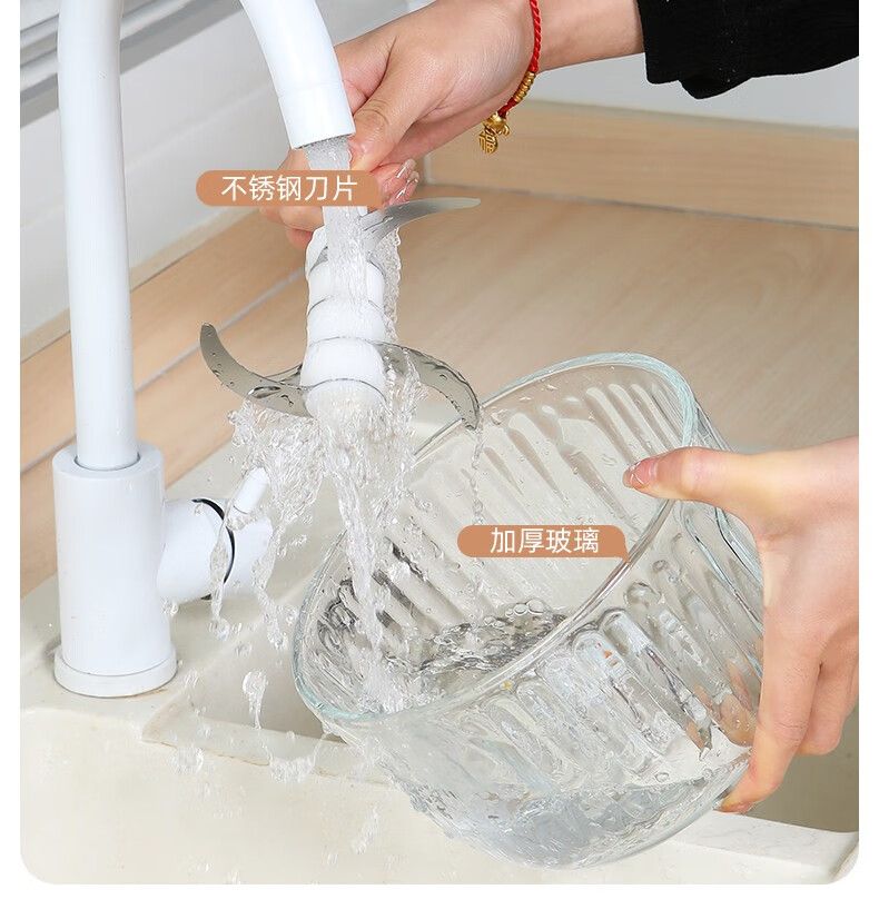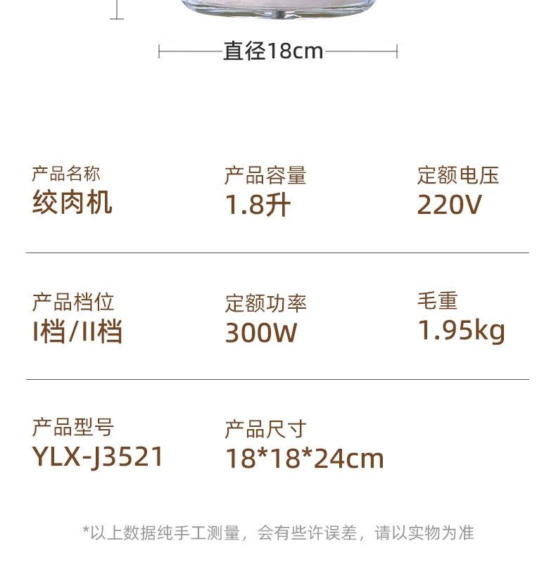 轻奢小家电品牌,一年内产品质量问题只换不修,300W大功率 1.8精巧容量 双档调速 均匀绞碎 四叶旋转刀 易清洗