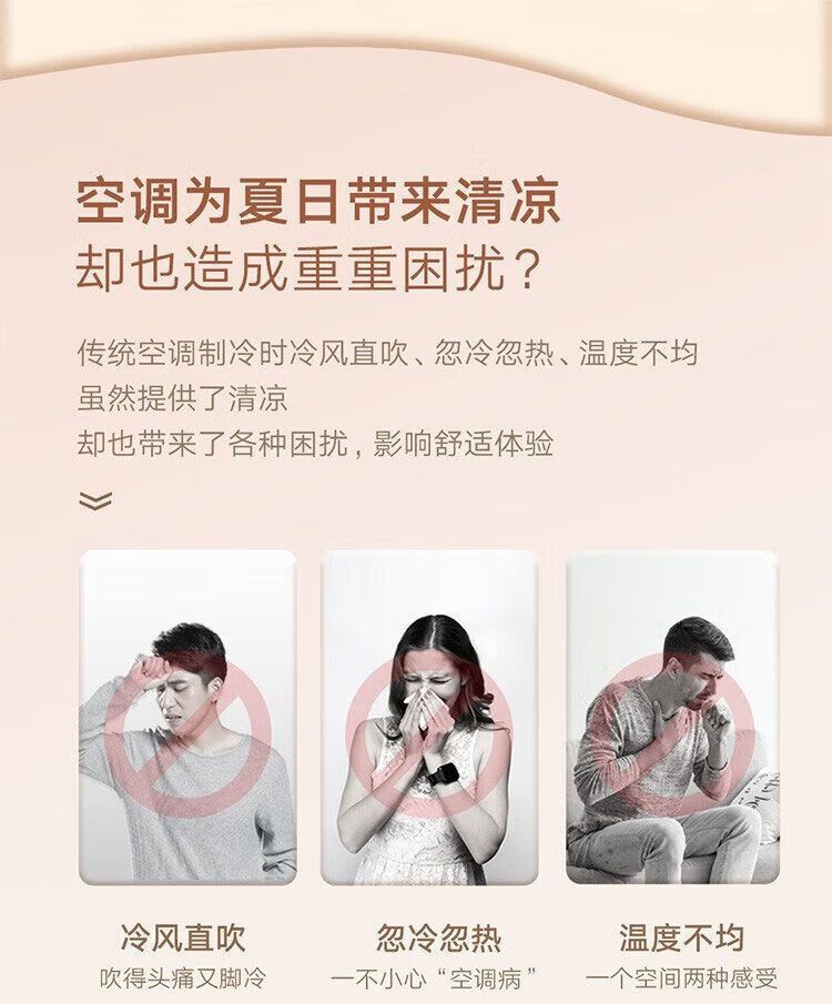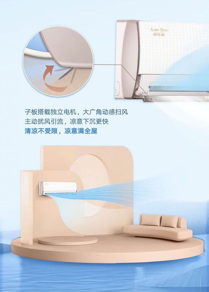 冷风不直吹,全域有凉感,子板独立电机,调节扫风更方便,千鸟格文理设计,颜值控的首选