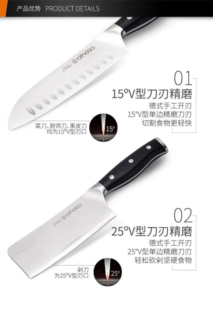 德国高端刀具品牌,全手工开刃,严选优质钢材5Cr15MoV,锋利持久,防腐防锈,一套刀具满足厨房各种需求