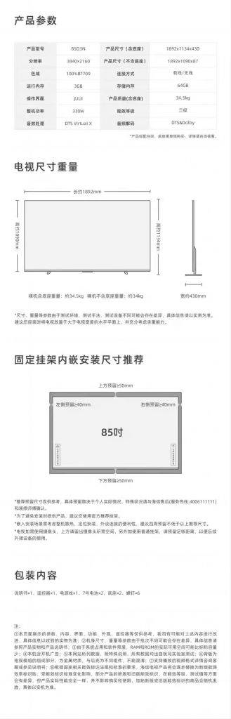 4K HDR高分辨率,3GB+64GB,120Hz高刷,高清全能投屏,DTS Virtual: X音效,care+舒适视觉