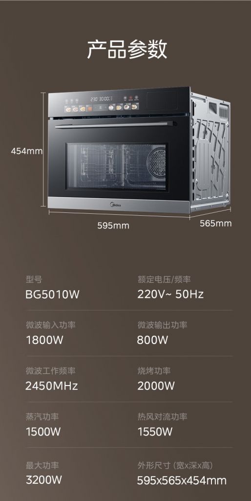 50L豪华大容量,微波双动力,专业级温控,澎湃大热风,高温过热蒸,珐琅搪瓷内胆,高温蒸汽不外排,10寸彩屏 看得清