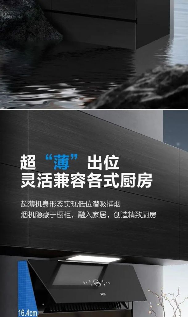 超薄拢吸烟机,23m3/min大吸力,3+1档风量轻松吸,体感操控,一键蒸水自动清洗