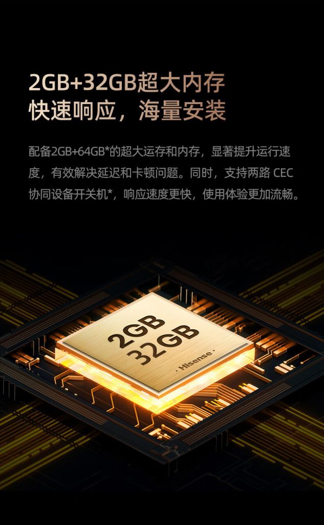 全通道120Hz疾速刷新,全时图像优化,长辈模式,Care+舒适视觉,AI远距离语音,2GB+32GB