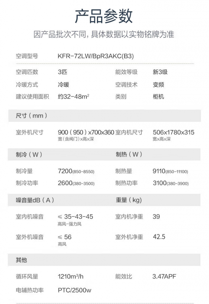 奥克斯空调AKC3匹方柜KFR-72LW/BpR3AKC(B2)