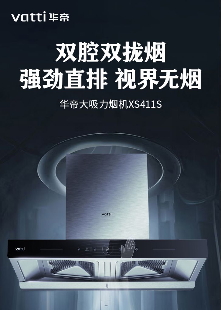 双吸烟腔拢烟准,隔空手势操作,25m³/min瞬时大吸力,1000Pa高速直排,双腔双拢全进风净烟,一键智感恒吸,烟灶联动