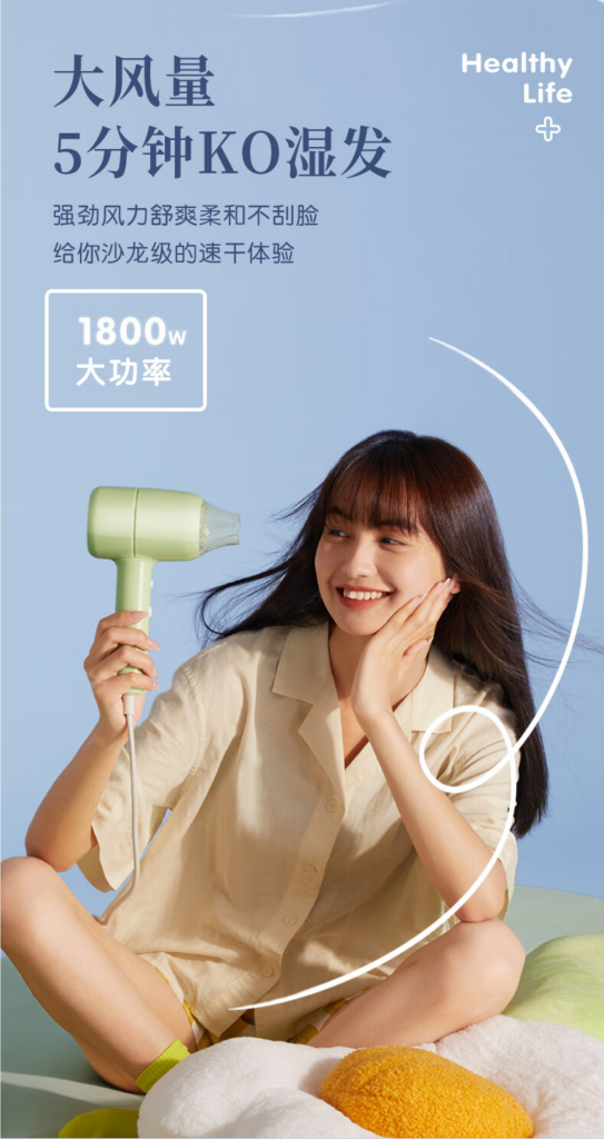 小熊负离子吹风机养护速干,革新水膜技术 ,千万级负离子养护, 健康除菌, 1800W大功率