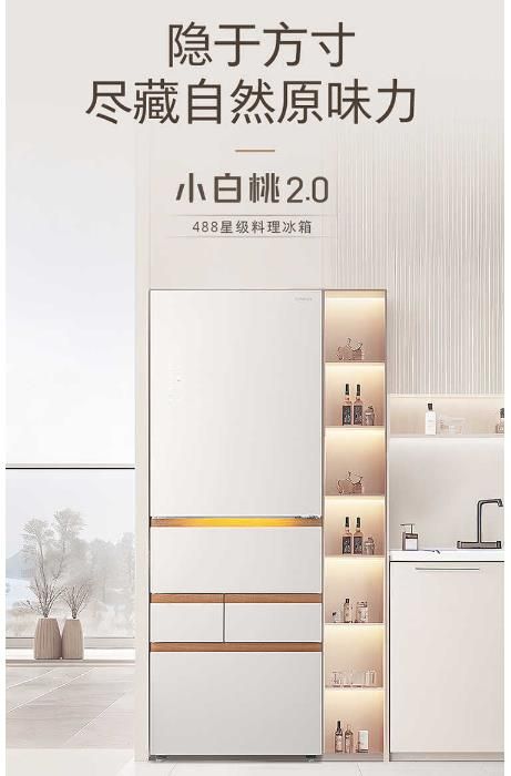 玉瑾纱 自然美学面板,高容全嵌 60mm超薄机身 693mm宽平台,78L中置超大宽幅变温空间 ,复式分储空间,60min急速洁净制冰 ,iTouch体感触控门,星级料理鲜科技